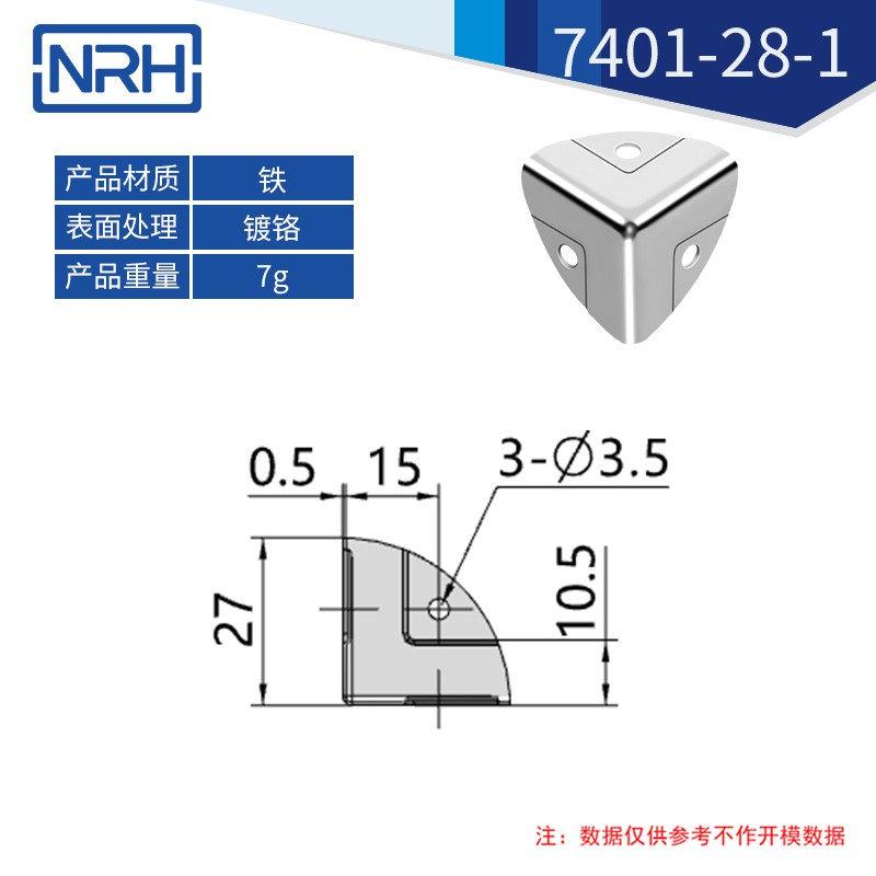 NRH Nanowire 7401-28 Wooden Case Sheet Iron Sheet Wrapping Corner Wrapping three sides Makeup Case Accessories Bags Corner Metal Guard
