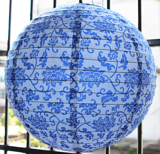 New Year Mid-Autumn Festival Spring Festival Ancient style blue and white porcelain Chinese paper lantern chandelier cover Wedding decoration small lantern hanging paper lamp