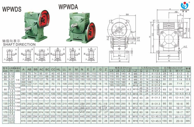 Khicheng Machinery Garshing Speed Reducer Morning Tide Trademark worm gear Worm Rod WPWDA155WPWDS155