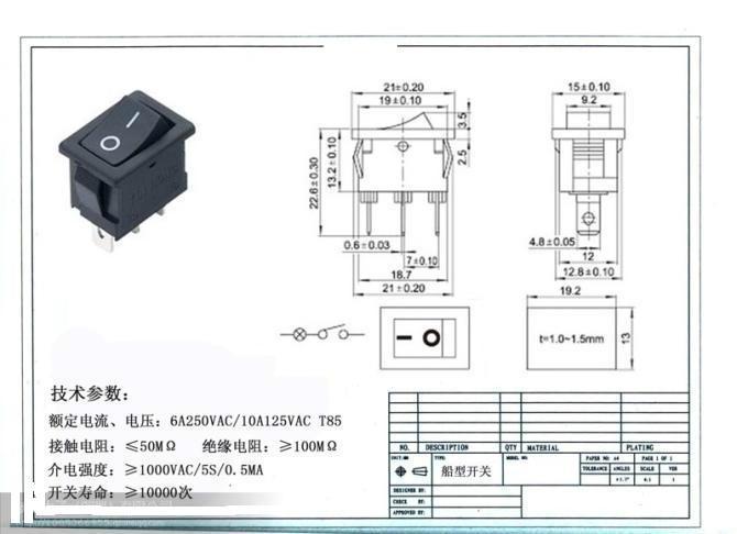 KCD1 2 feet square wane switch two feet 2 gear switch big current 6A