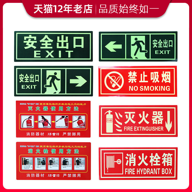 Security outlet wall sticker * 5 sheets of right safety exit wall sticker * 5 sheets of left safety exit wall sticker * 5 sheets of fire extinguisher logo sticker * 5 sheets of forbidden smoking logo sticker * 5 FIRE hydrant ID