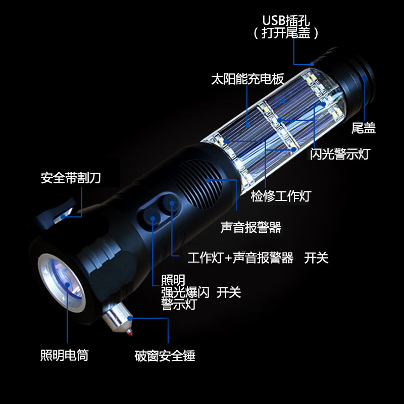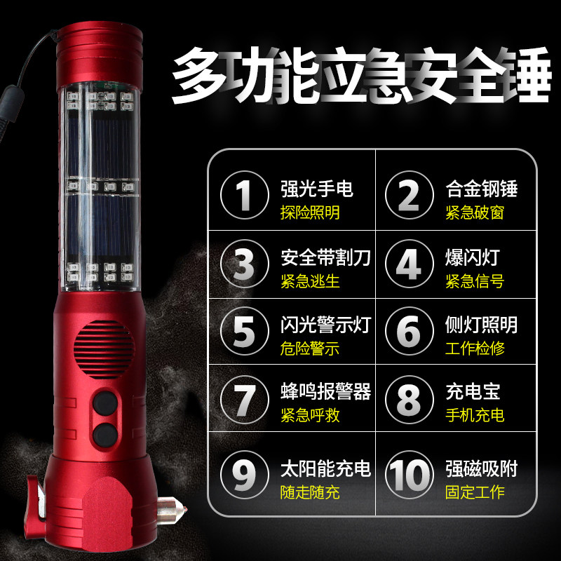 Car safety hammer Car multi-function ten-in-one strong light flashlight Fire escape window breaker Car emergency self-help