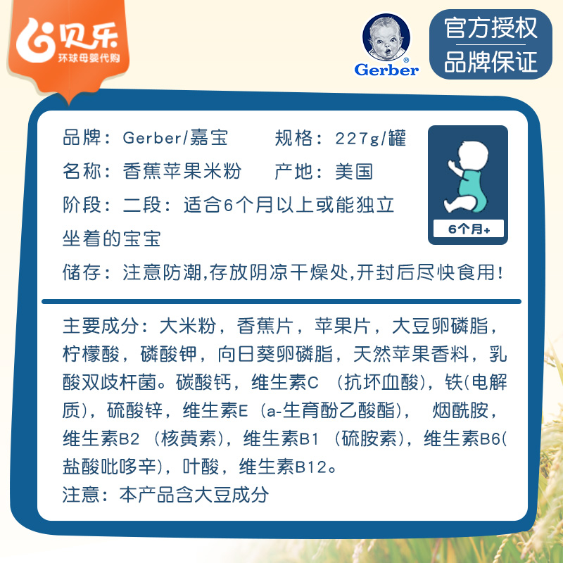 US imports Gerber Carabao 2 segments of green apple banana mixed fruit probiotic baby rice flour 227 gr