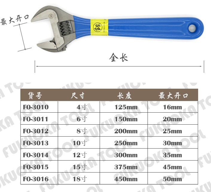 Japan Fukuoka Tools Activity wrench 4-15-inch Lean Visage Plastic Active Wrench Pipe Pliers Opening Wrench Live Loo Wrench