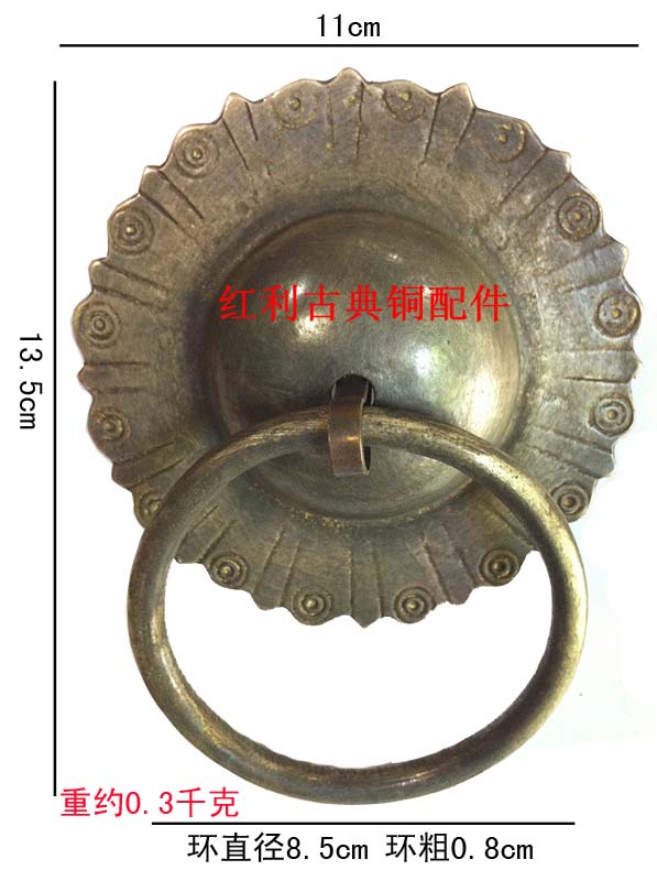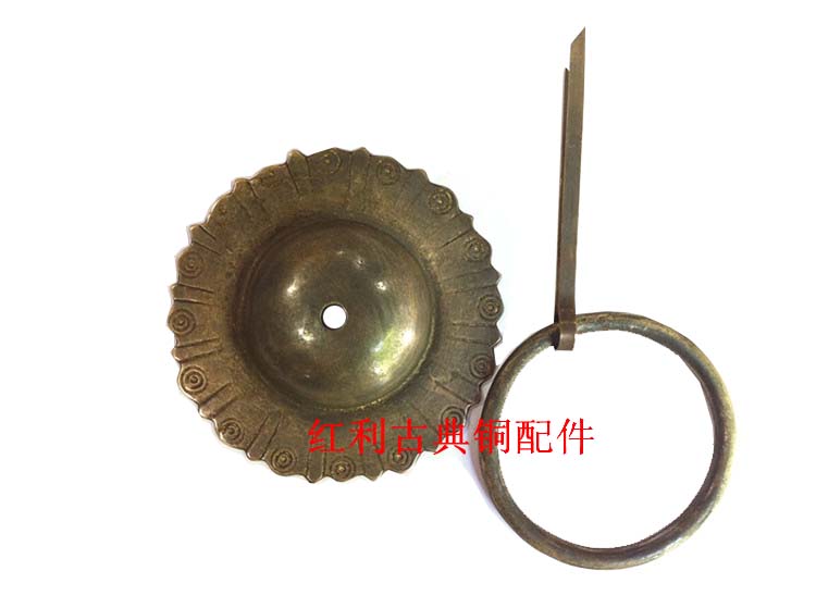 Chinese imitation ancient retro gate door solid wood door handle pure bronze lion head handle beast head door ring bronze handle accessory