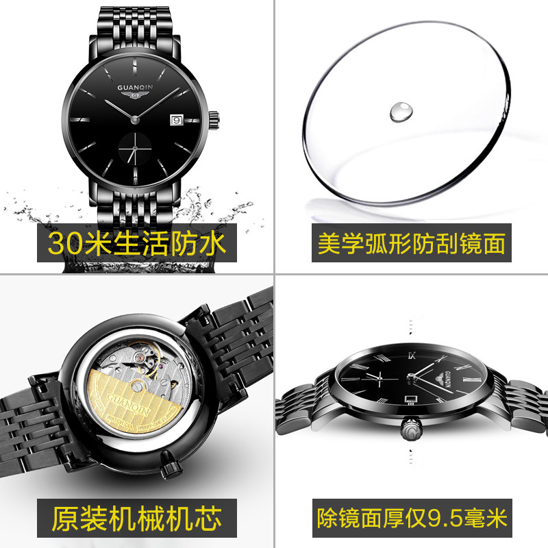 Guanqin watch men's ultra-thin leather mechanical watch automatic luxury Swiss fashion men's watch 2021 new
