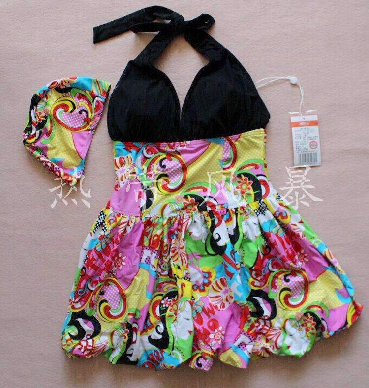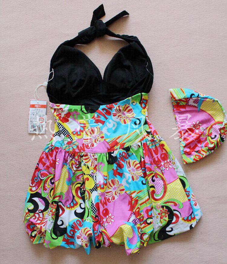 Hudaith swimsuit woman conservative even body triangle 95018 left 95610 right big size fluffy dress black color