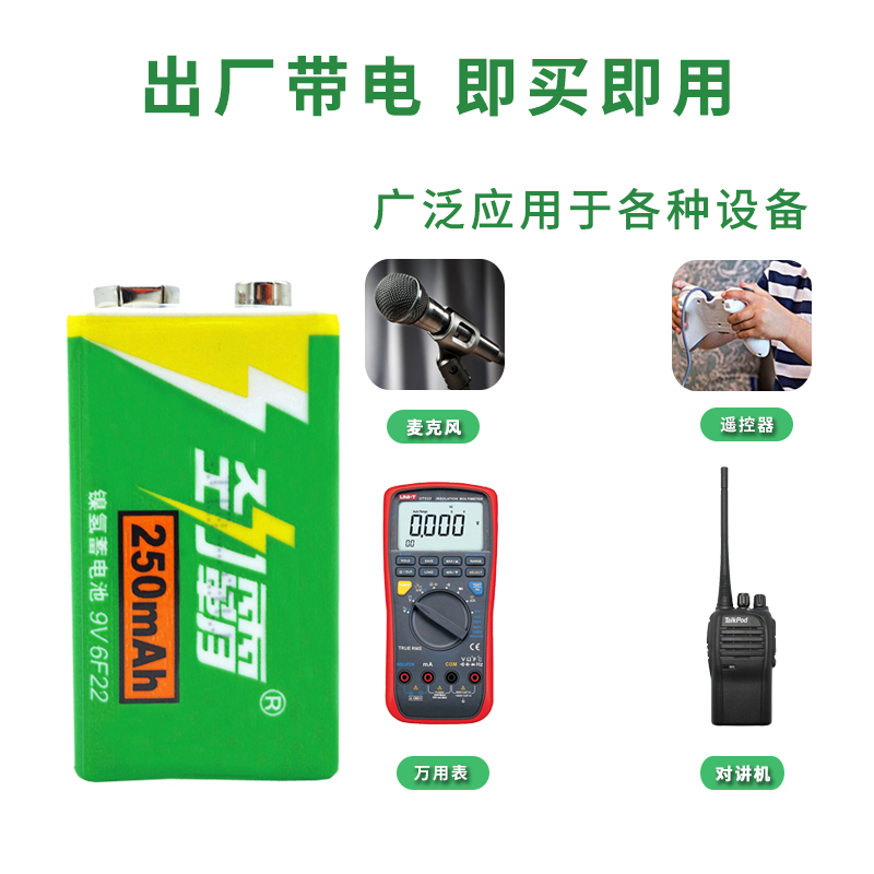 Jinba 9V Rechargeable Battery 9V battery 250mAh nine volt 6f22 block battery microphone Multimeter
