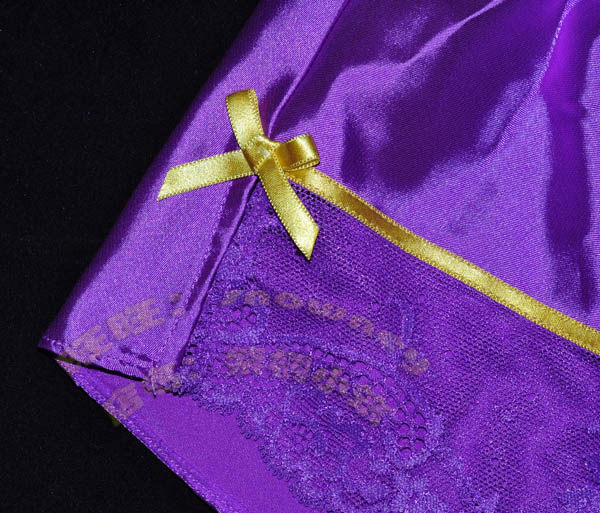 Korean foreign trade original single purple smooth satin with yellow ribbon cute bow sexy home shorts pajamas