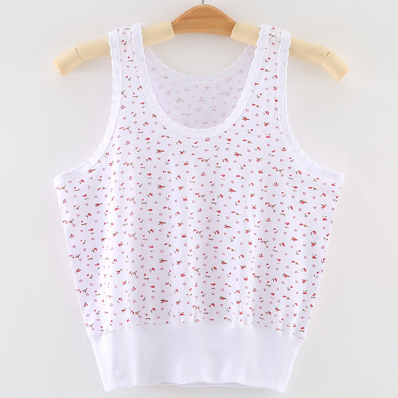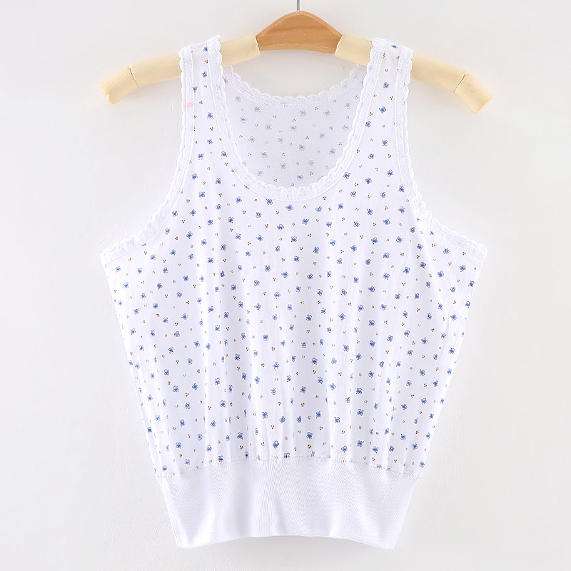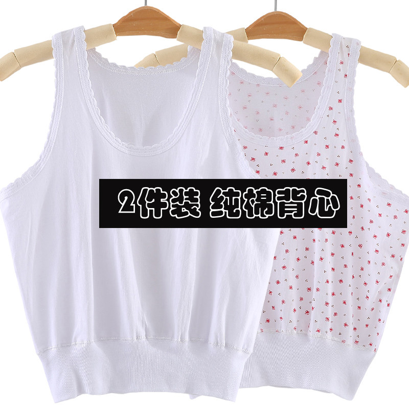 2 Pieces Lady Pure Cotton Sweatshirt With Sleeveless Mom Small Vest Without Steel Ring Underwear Cross Bar Sling White Vest