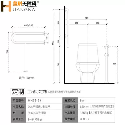 304 stainless steel handrail barrier-free handle for elderly people with physical and mental disabilities bathroom toilet non-slip safety handle