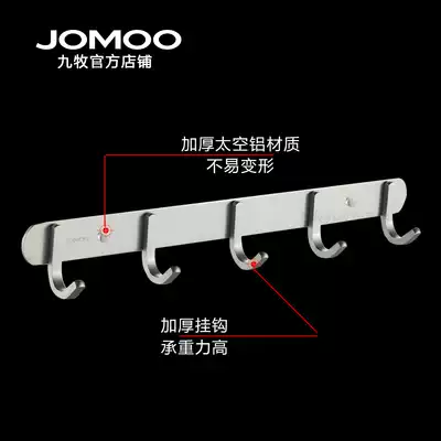 Jiumu punch-free hanging hook row hook Bathroom wall hanging towel clothes cap hanger powder room space aluminum hook