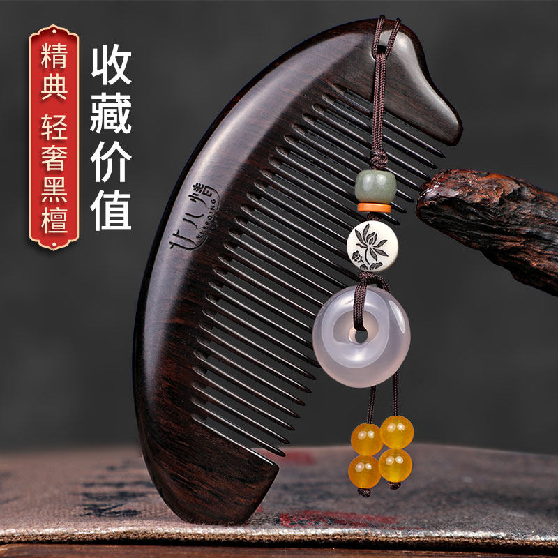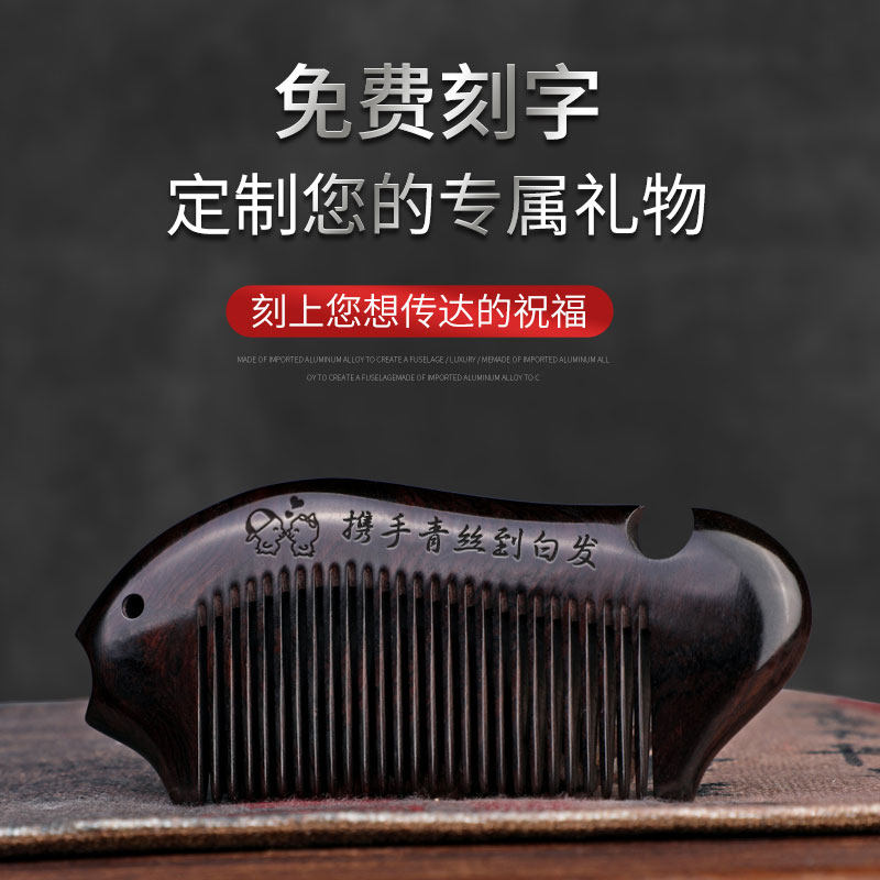 Uwood Natural Black Sandalwood Comb Rolls Hair Comb Massage Straight Hair Dresser Comb portable with male and female lettering