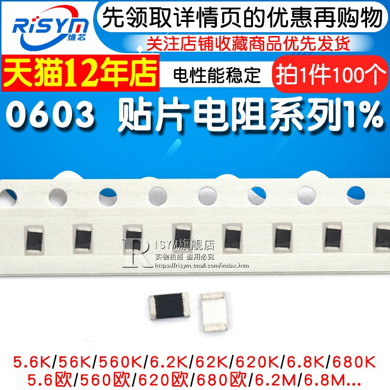 0603 patch resistance 1% 5 6K 56R 560 Euro 6 2 62OM 620E 6 8M 68Ω 680K
