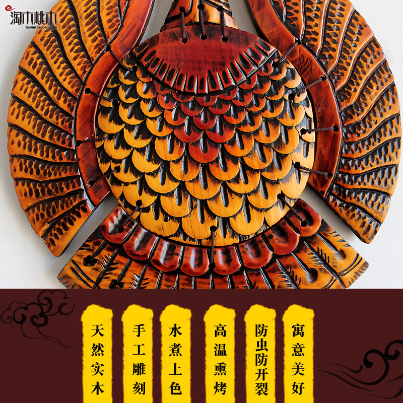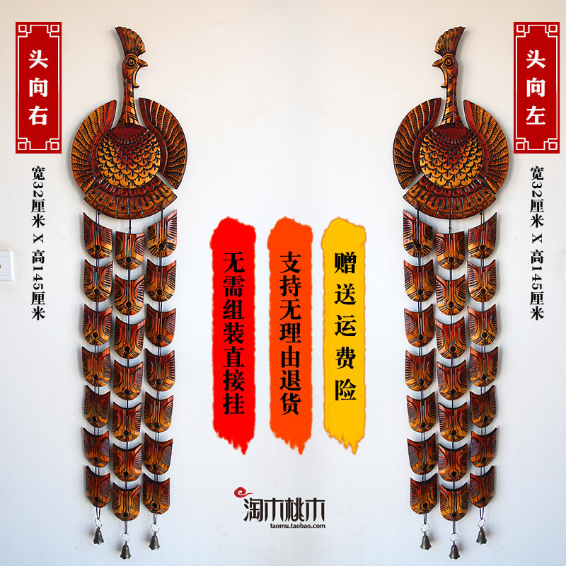 Eurostyle Wall-mounted Decoration Peacock Wood Carved Wall Pendant Wall Decoration Living Room Wood Wall Decoration Craft Gift Pendulum Decoration Creative Big Hangings