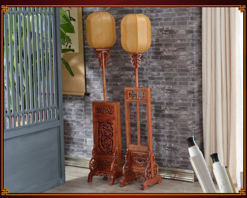 Wooden palace lantern solid wood Dongyang wood carving antique furniture restaurant teahouse Chinese lamp stand floor lamp retro lamp