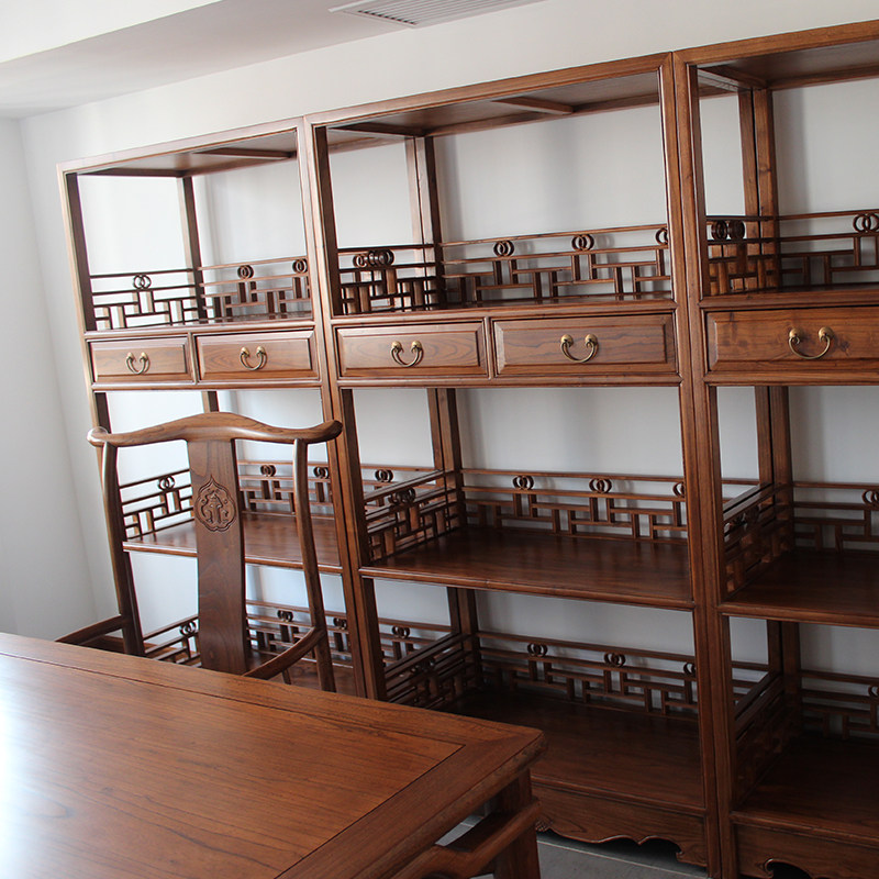 The Ming style book house is innate new Chinese classical desk old elm wood painting case Ming and Qing imitation ancient bookcase solid wood bookshelf