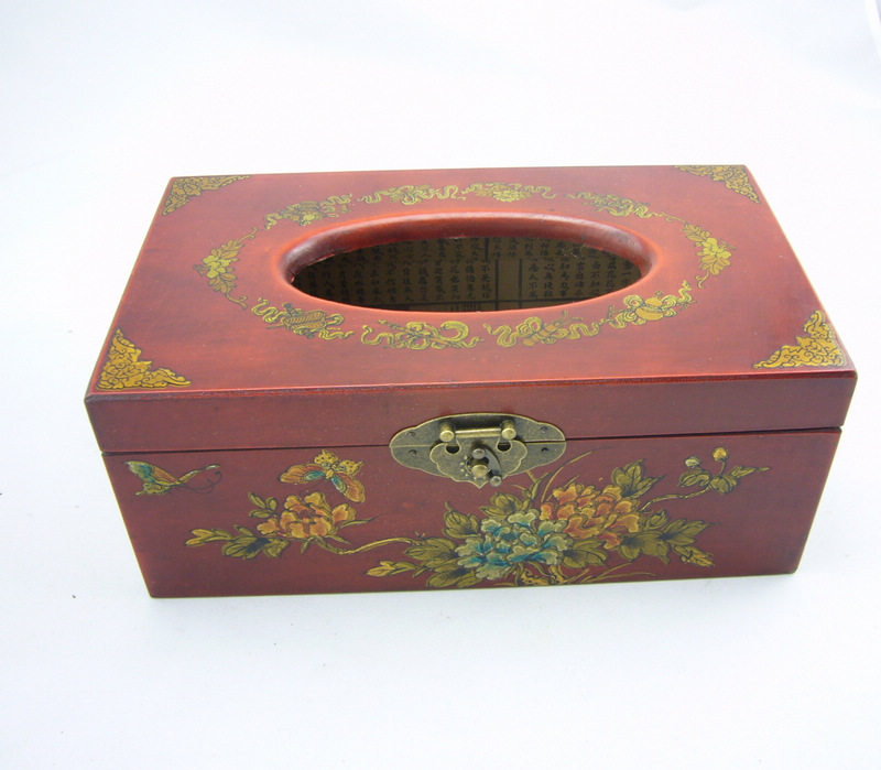 Fine flowers and birds antique tissue box Chinese nostalgic napkin box Vintage storage box