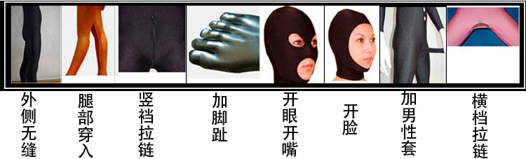 Men's zipper (zipper length 15-20cm) Women's zipper (zipper length 35cm) crotch horizontal zipper front V-shaped zipper back U-shaped zipper hood separated wrist zipper JJ cover mouth