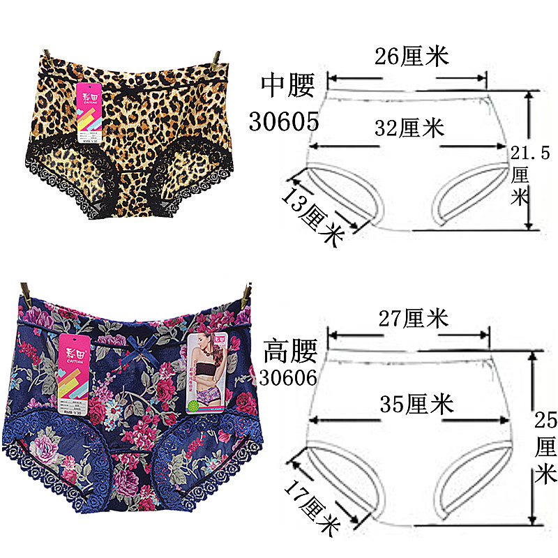 Caitian ice silk underwear women's middle waist 30605 thin lace edge quick-drying antibacterial high waist 30606 large size combination
