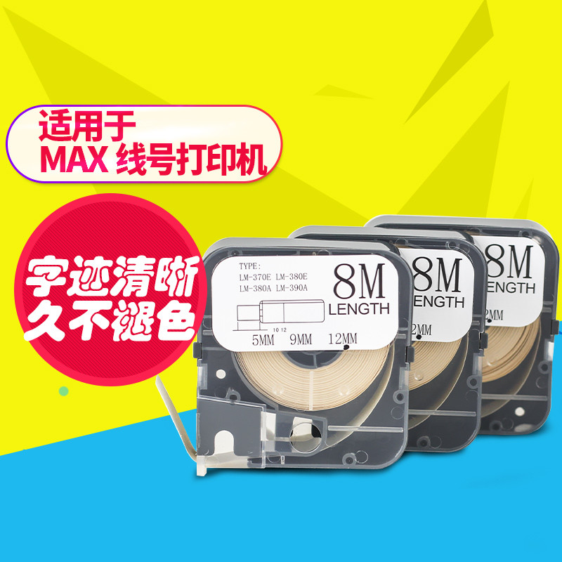 MAX line number machine sticker lm380 self-adhesive label with lm550 yellow 12mm sticker strip suitable for lm390a