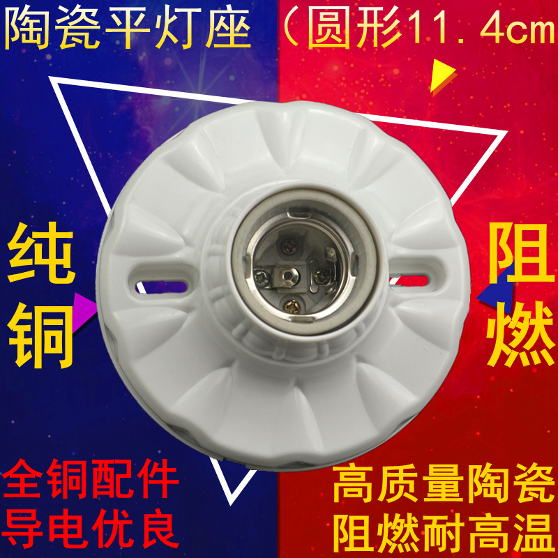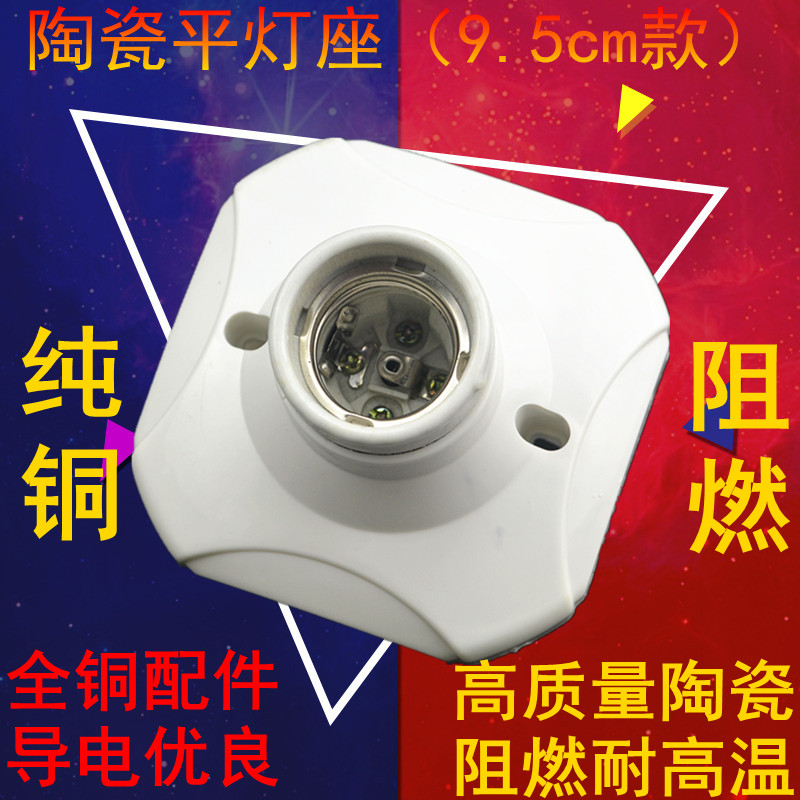 Energy-saving lamp base E27 full copper ceramic suction top square screw mouth lamp holder flat lamp holder E27 Ming mounted large flat lamp holder