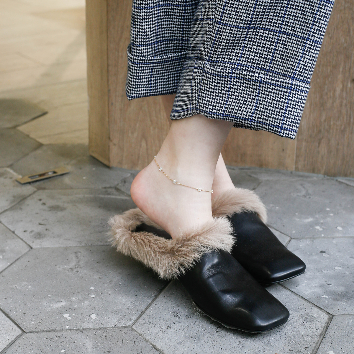 Taiwanese designer (Spoild Brat) Dessert Millet Pearl Four-petal Foot Chain in Versailles