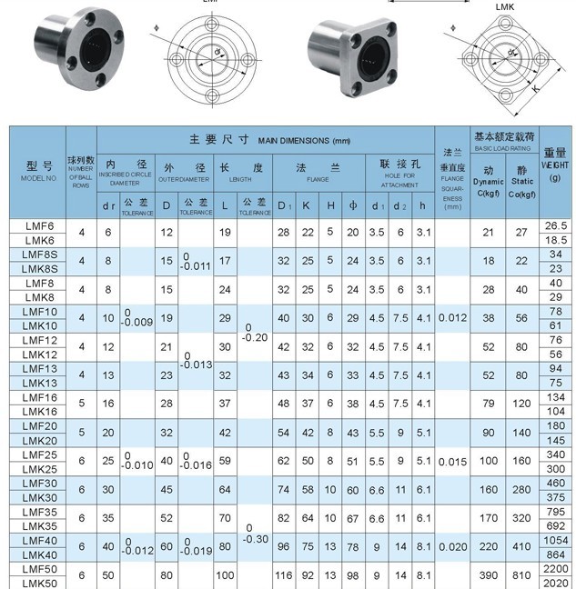 Linear bearing round flange bearing flange linear bearing LMF20UU LMF20LUU