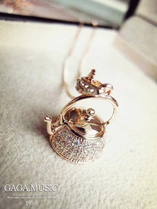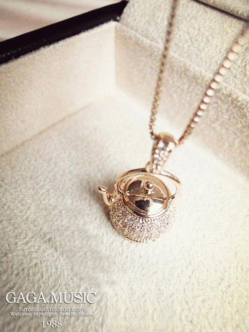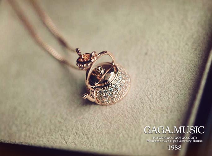Bohemian Vintage 18K Gold Plated Small Kettle Kettle Crystal Necklace Clavicle Chain Jewelry Female
