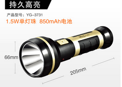 Yage YG-3731 flashlight portable lamp Black King Kong high-brightness high-power long-range strong and weak gear 1W