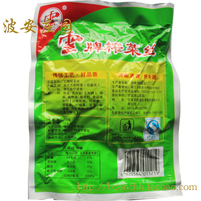 Cloud brand mustard silk 110g*5 bags Old Ziyun vegetable pickled appetizing pickles small packages Boan Manor