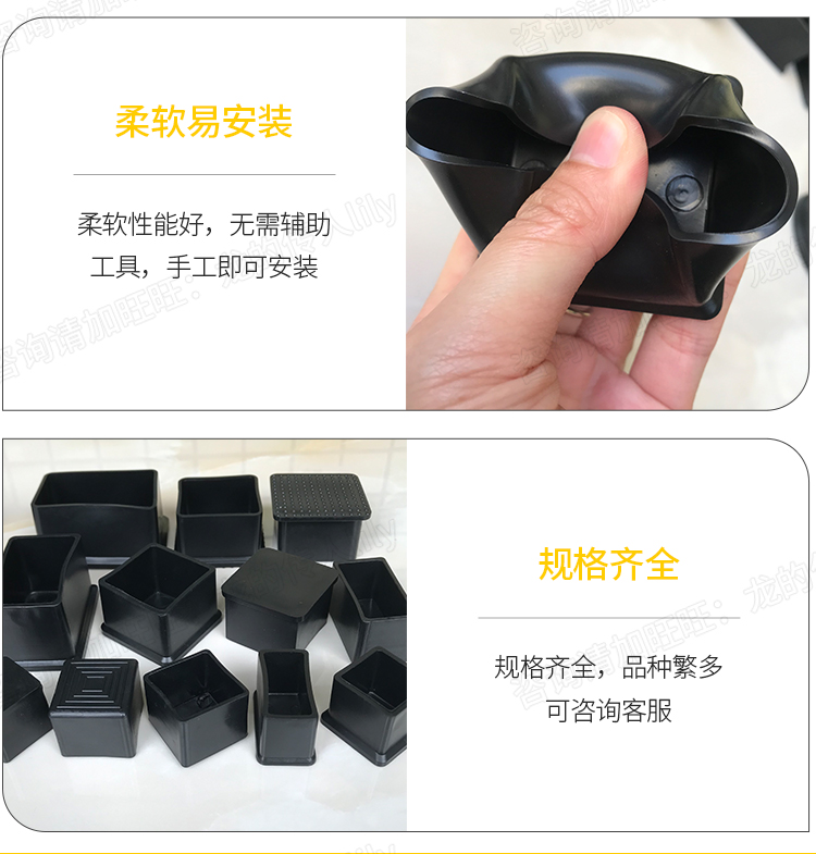 25*25PVC pipe plug Rubber foot pad Soft rubber plug square jacket Protective sleeve dustproof sleeve plug choke plug square rubber sleeve
