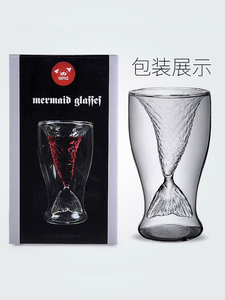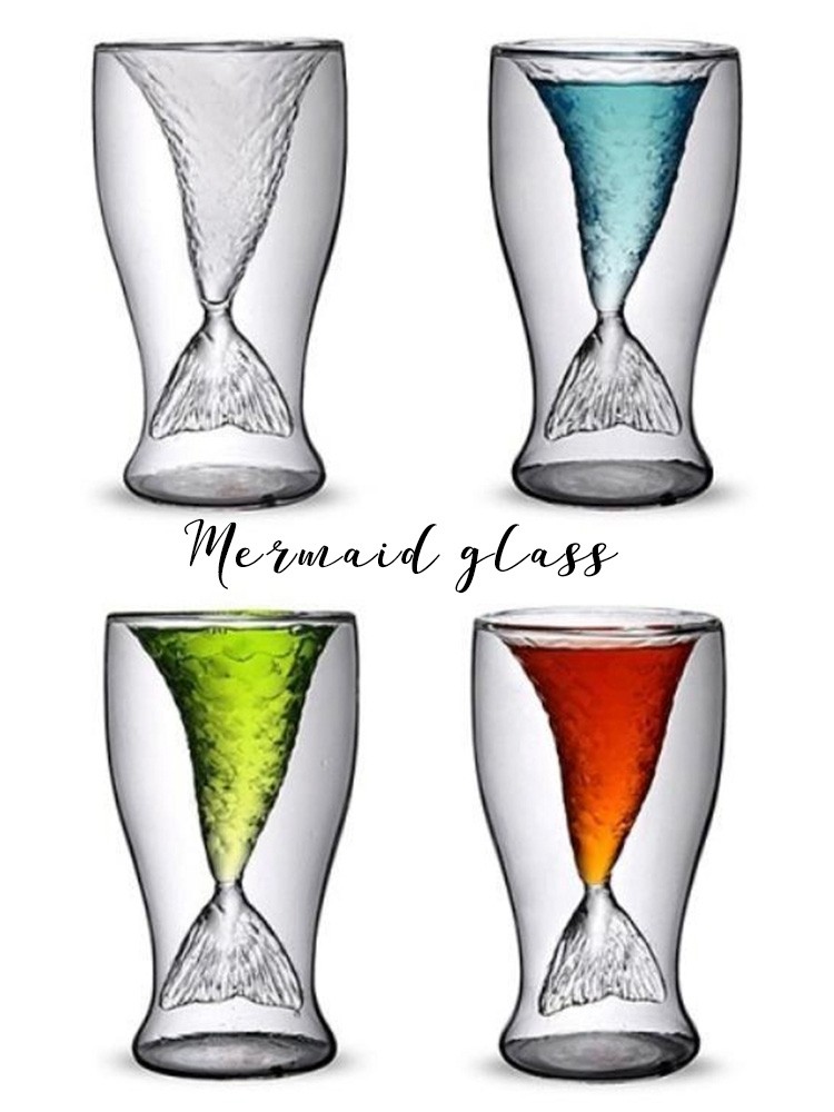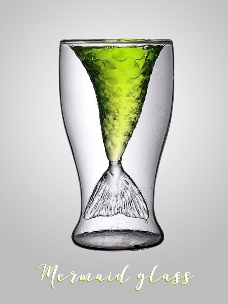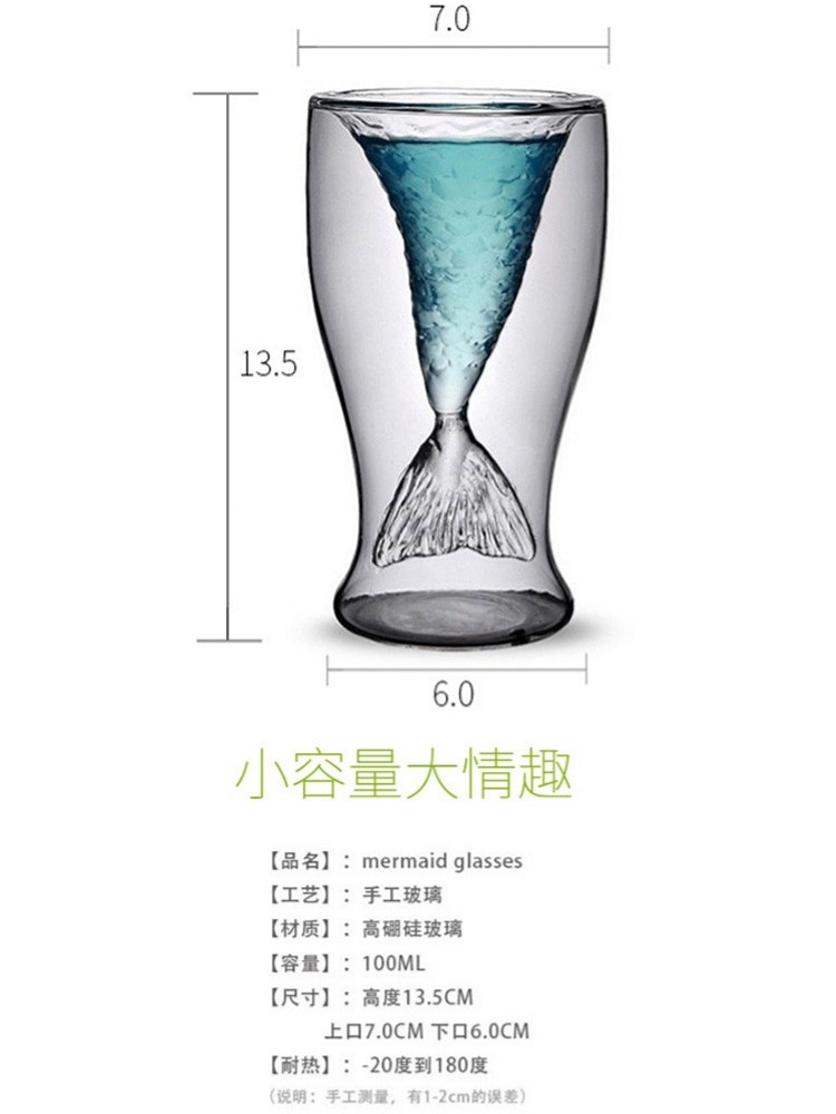 Fashionable Little Mermaid Princess Double Layer Cup Creative Mermaid Tail Glass Drink Glass Wine Glass