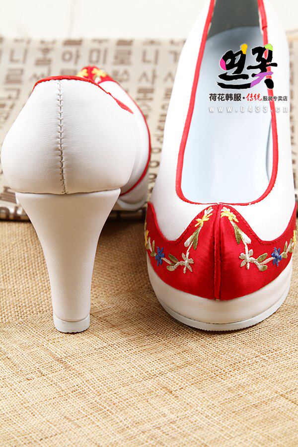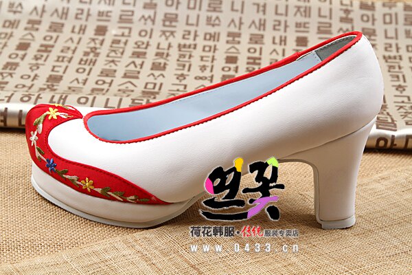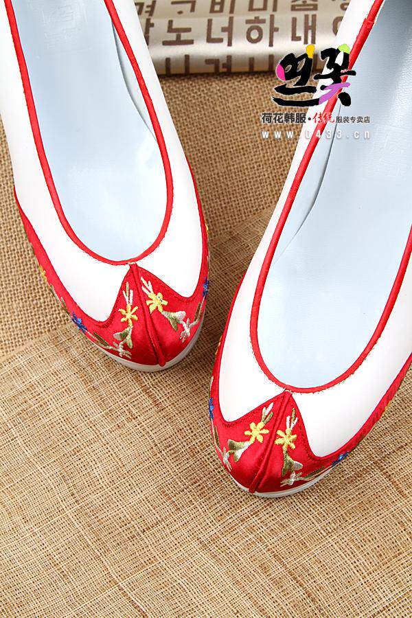 Korean Original Clothing Import Traditional Korean Clothing Hook Shoes White Red Hook Korean Suit Flowers Shoes 7cm High heel H-P03114