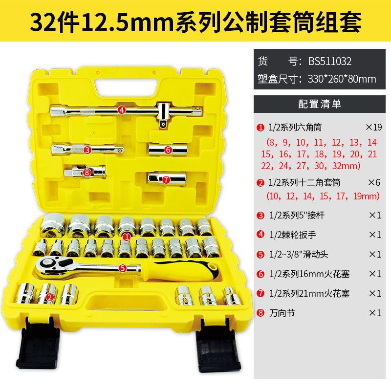 Persian tool 32 pieces of metric sleeve set sleeve hexagonal sleeve set ratchet wrench BS-J032