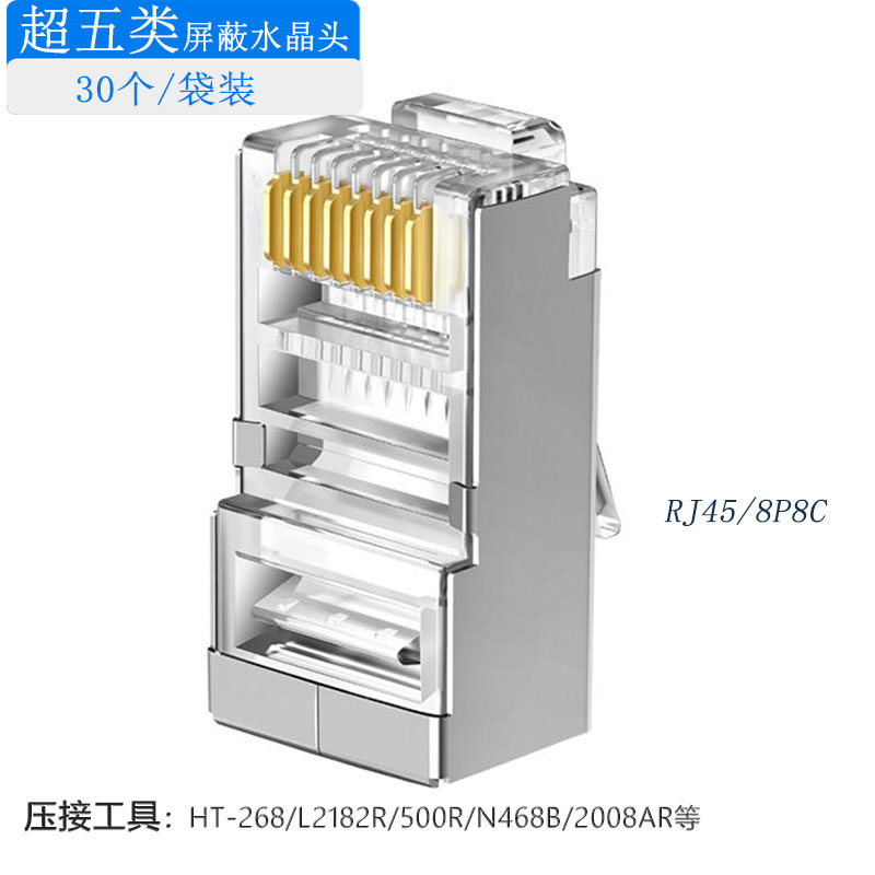 Original Sanbao super five shielding crystal head JACK gold-plated spring RJ45 metal shell network network cable crystal head Cat5e metal head unit price to replace Commscope 6-569530
