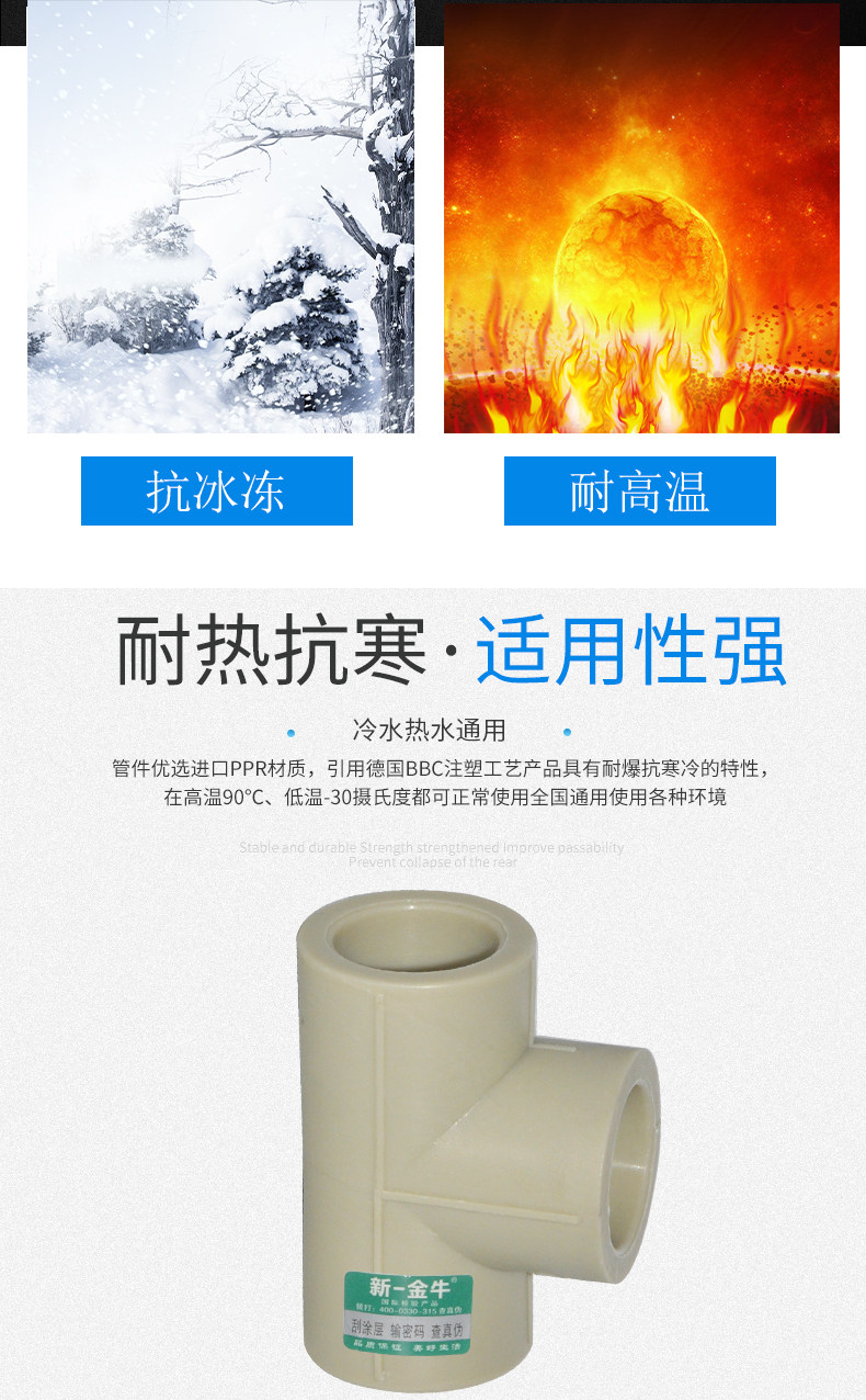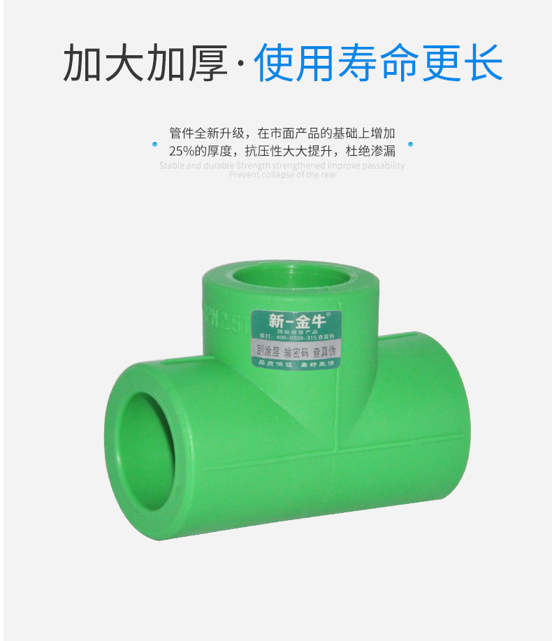 New one golden ox and other diameter tee 4 points 20 6 points 25 1 inch 32 boutique thickened PPR hot melt welded pipe fitting grey green
