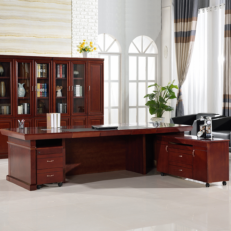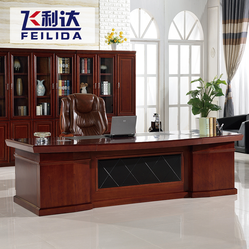 Office furniture Paint Big Bandae Stick Solid Wood Leather Boss Table Presidents Table Chairs Combination Manager Table