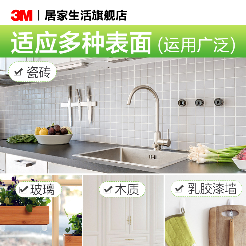 3M High Man Kitchen Hooks Powerful Adhesive Hook Free of nails Adhesive Hook Suction Hook Bathroom Makeup Room Slimy Hook Hook Creativity