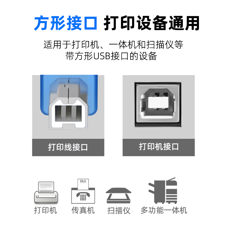 Transparent blue 1 5 m - 10 m standard 2 0 USB square mouth printing line data line with magnetic ring high speed printing