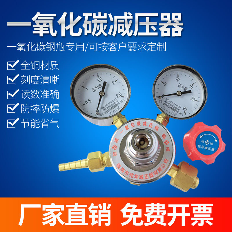 Carbon monoxide full copper pressure reducer CO carbon monoxide double gauge cylinder pressure reducing valve