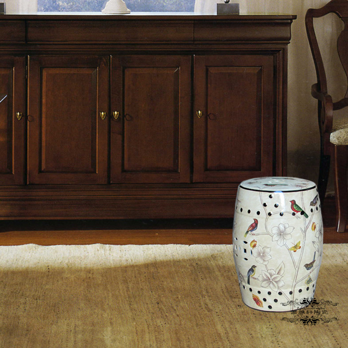 New Chinese-style European-style hand-painted ceramic drum stool home decoration American country classical dressing stool shoe stool round pier stool
