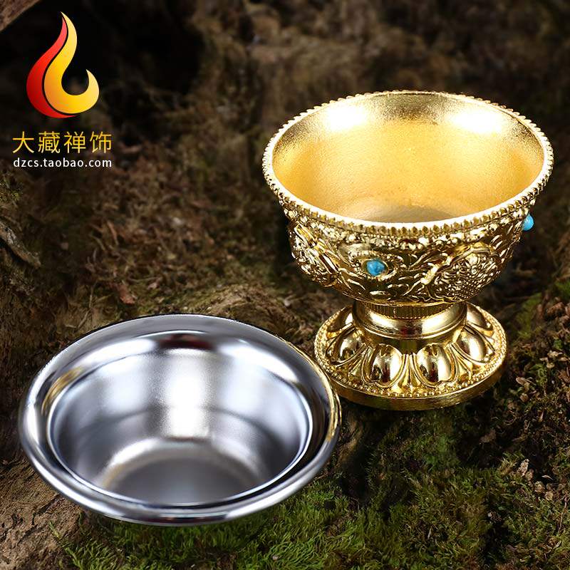 Water supply bowl Eight auspicious seven Water supply bowl Xiang Seven Water supply bowl Eight Holy water cup with liner Square water supply cup Small