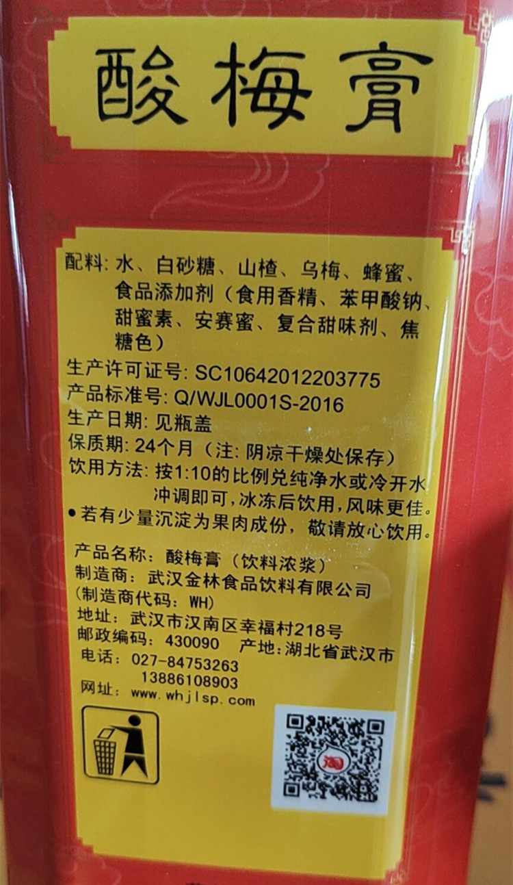 Jinhui Jinlin Fruit village plum paste flavor concentrated plum soup Household plum juice brewing beverage raw materials Commercial