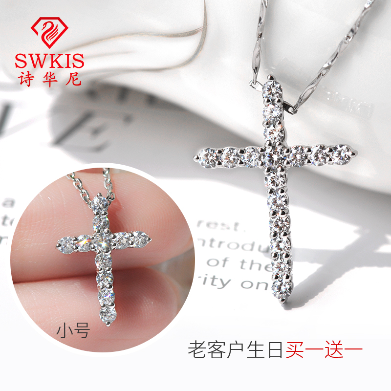 Diamond Cross necklace female couple simulation diamond student European and American hanging piece 925 silver kosher chain sent girlfriend