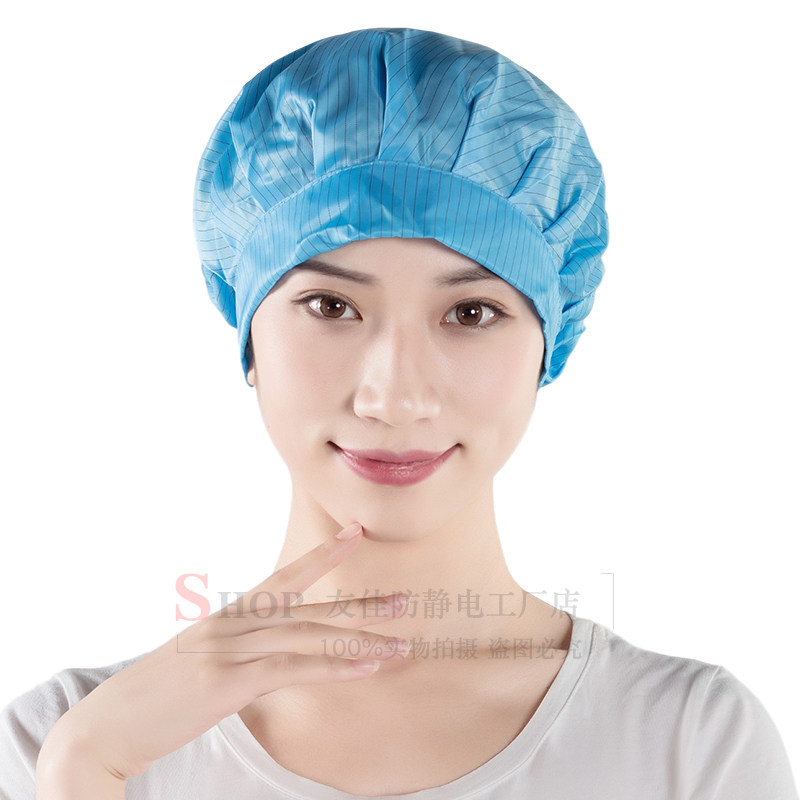 White blue anti-static round cap dust-proof food cap chef clean dust-free cap hygiene cap work cap small worker cap