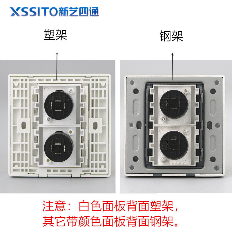 White (single)White (double)Grey steel frame (single mouth) Grey steel frame (double mouth) Black steel frame (single mouth) Black steel frame (double mouth) Champagne steel frame (single port) Champagne steel frame (double mouth) Brushed gold Steel frame (single mouth) Brushed gold Steel frame (double mouth) Brushed gold Steel frame (single port) Black module brushed gold Steel frame (double port) Black module plug (2 sets)