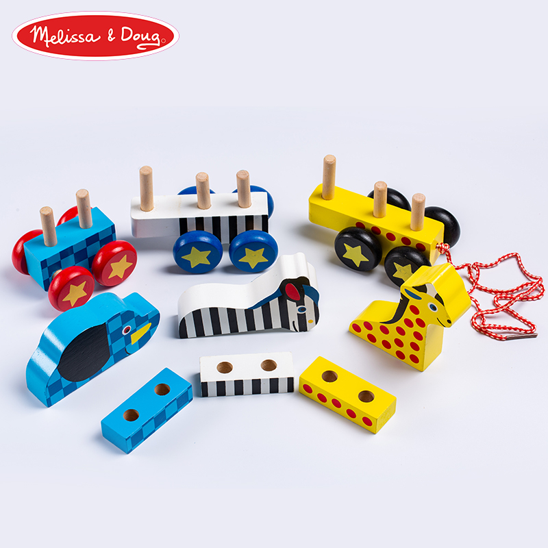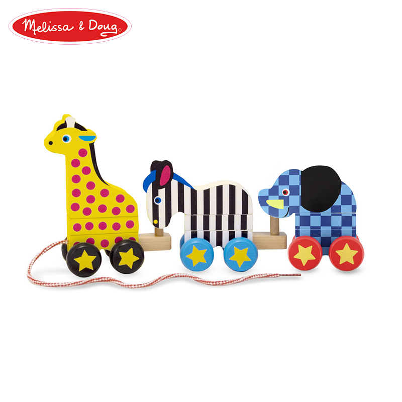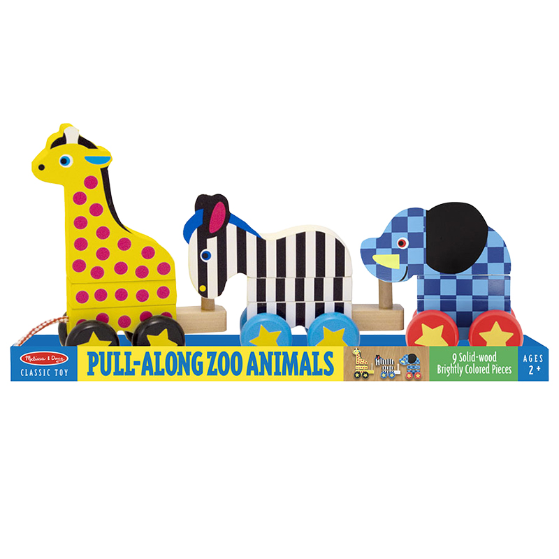 Melissa Doug, American Zoo Animals with pulling rope, Children's Toys Simulation Animal Model