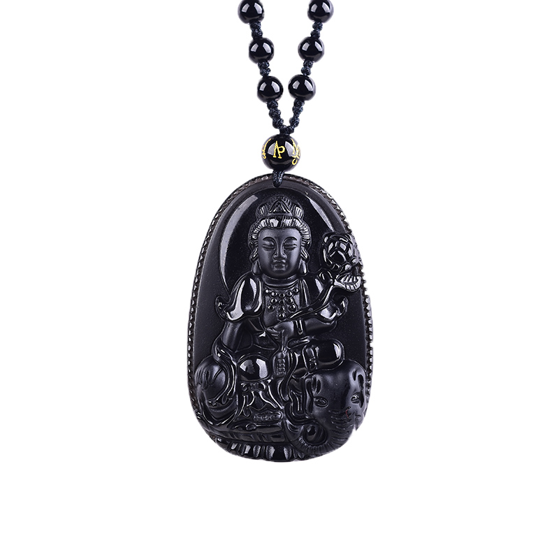 Ice species obsidian belongs to dragon and snake Puxian natal Buddha zodiac patron saint Pusa pendant necklace for men and women