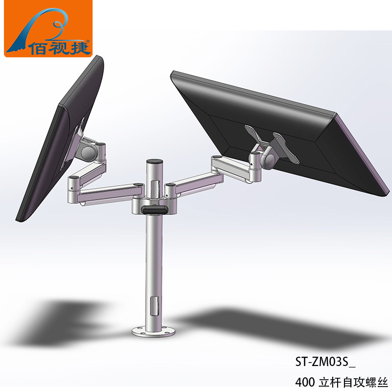 Baishijie brand new high-grade aviation aluminum alloy silver universal joint vertical pole computer monitor bracket